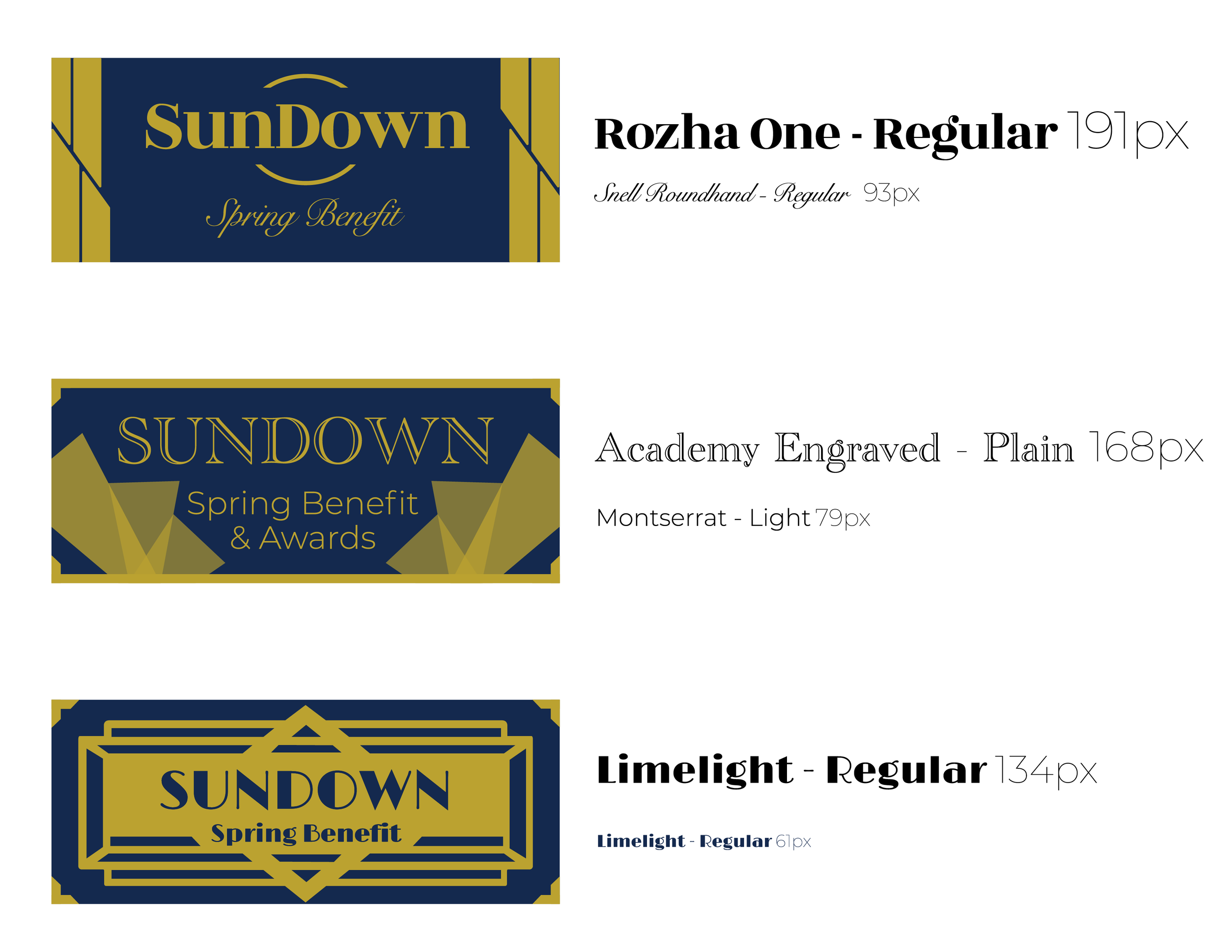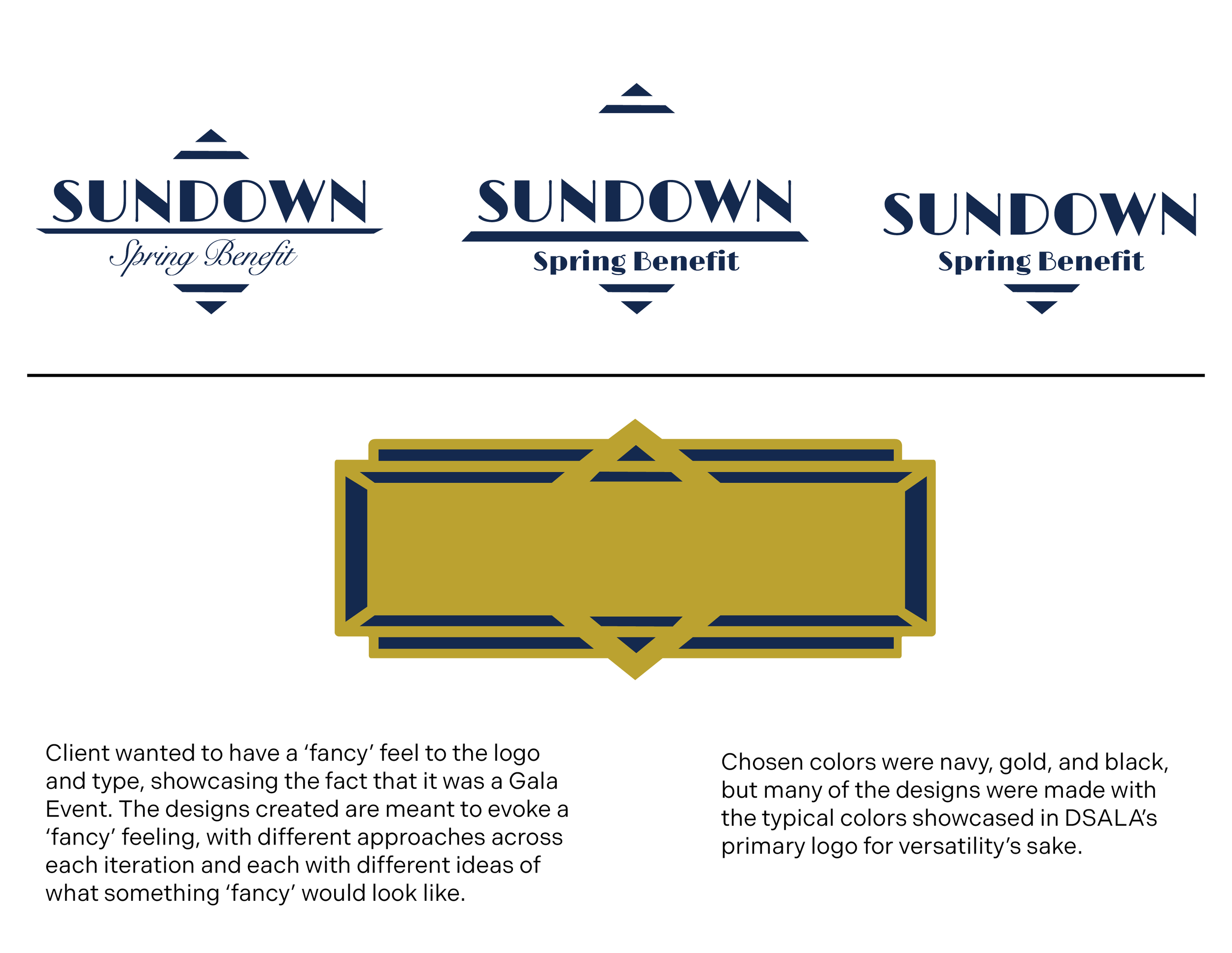 Client requested for a ‘high-end’ or ‘fancy’ feel for the concepts, to highlight that the event is meant to be an upscale Gala Event.