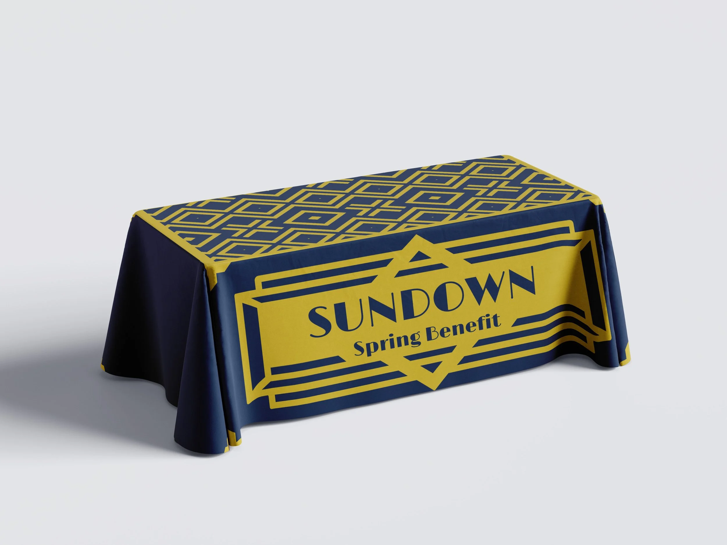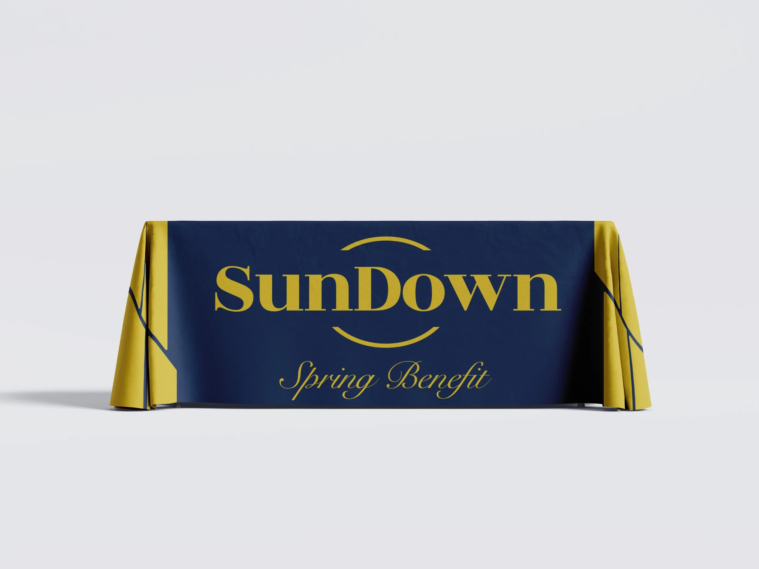 Concepts for a physical table banner as requested by client, in the style of some of the logo concepts.